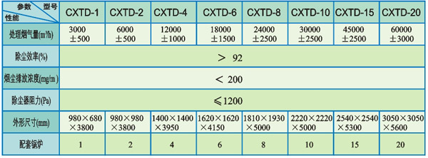 CXTD系列陶瓷多管旋風除塵器性能表